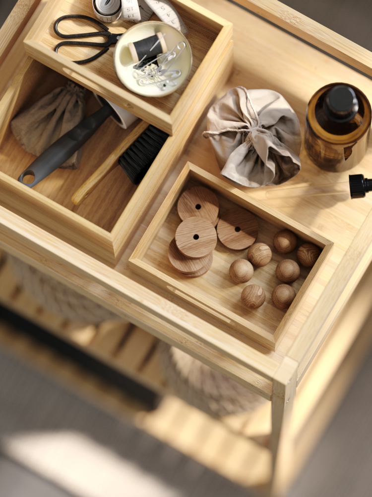 Dřevo, len, bavlna, keramika, kámen nebo bambus. Materiály jsou autentické a často i lehce nedokonalé.
