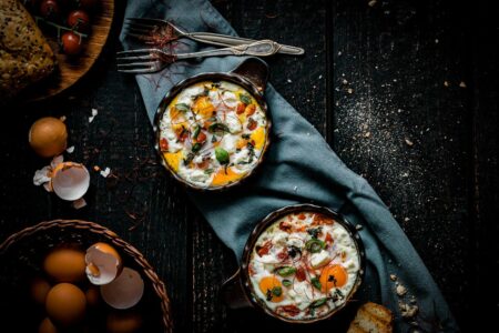- pošírovaná vejce s houbami nebo brambory pečenými v popelu